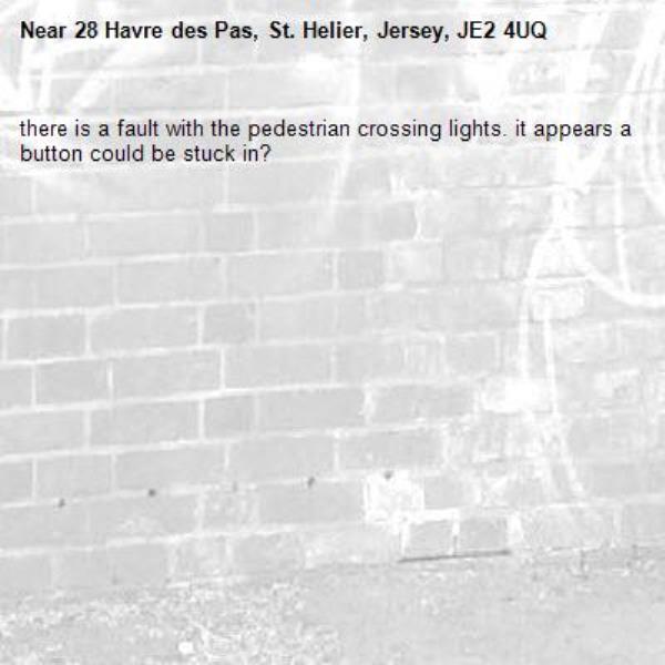 there is a fault with the pedestrian crossing lights. it appears a button could be stuck in?