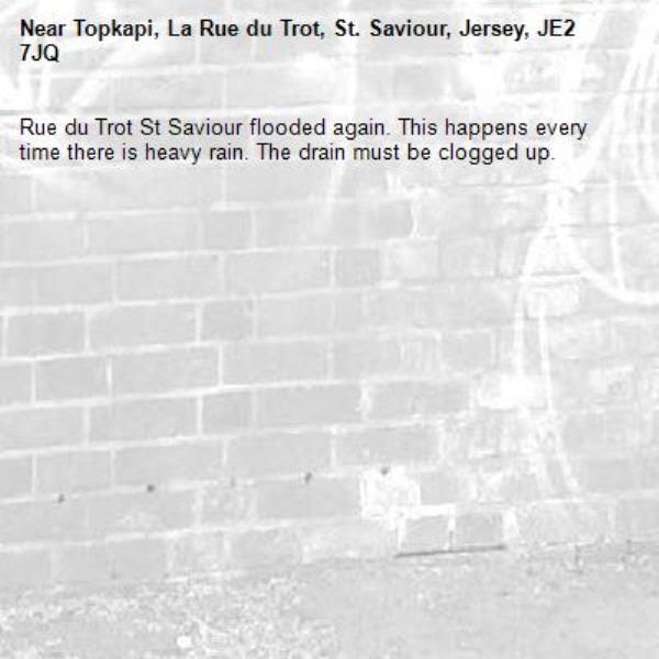 Rue du Trot St Saviour flooded again. This happens every time there is heavy rain. The drain must be clogged up.